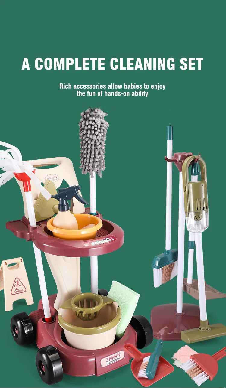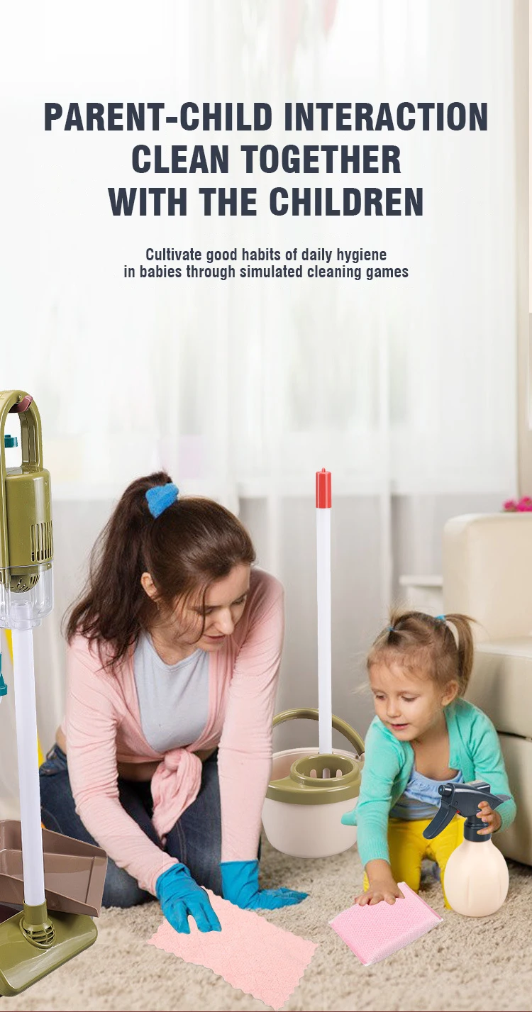 Kids Household Cleaning Toy Set Cleaning Tool Pretend House Play Cleaning Home Play Toy Game Broom and Mop Set for Kids Gift